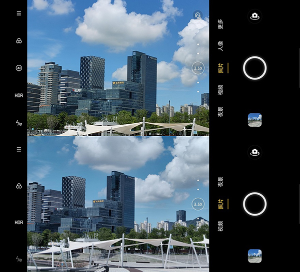 ตัวอย่างภาพพรีวิว เปรียบเทียบกล้องรุ่นเก่า (บน) และกล้องรุ่นใหม่ (ล่าง)