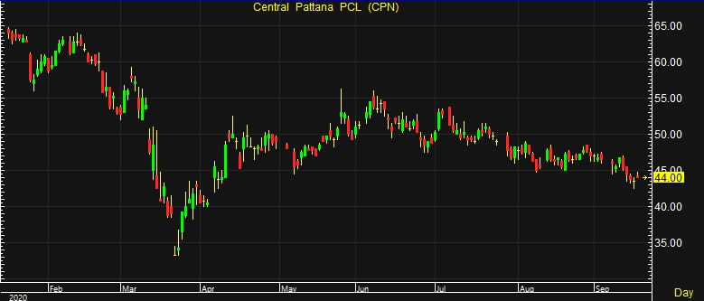 โดยราคาหุ้น CPN ปรับตัวขึ้นมาในแดนบวก หลังโดนขายมาต่อเนื่อง 4 วันทำการ นับตั้งแต่ราคาปิดที่ระดับ 46.75 บาท เมื่อวันที่ 10 ก.ย.63
